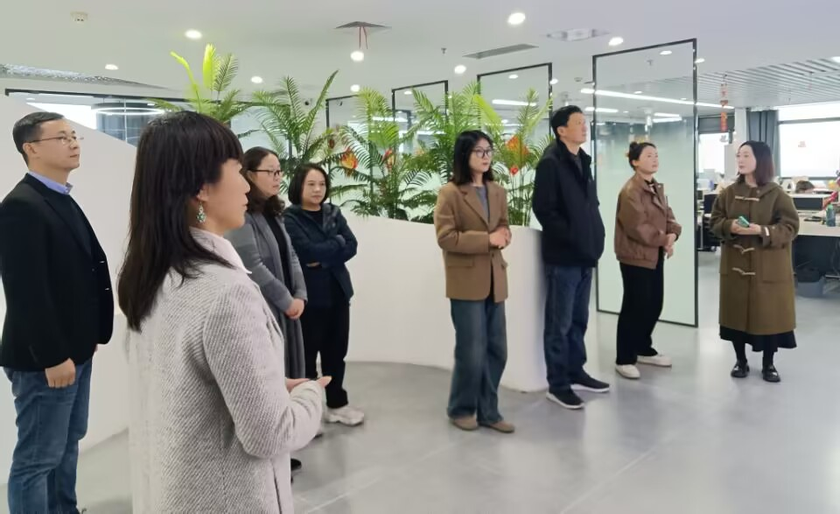 设计学院一行在企业方陪同下首先参观考察了企业的公司环境、组织结构、业务板块和直播基地。座谈会上,东昊科技人力资源总监杨东梅和校企合作业务主管从企业发展历程、企业文化、电商行业新业态、校企合作方式以及校企深度合作案例等方面介绍了企业的具体业务和合作重点,充分表达了企业与学院在复合型人才培养、实习实训基地建设等方面深入合作的意愿。胡家增等表达了设计学院此次访企拓岗开展校企合作的目的,深入阐述了学院与企业在产教融合、实习实训基地建设、企业工作坊建设、技术交流与合作等方面的工作思路,就校企合作框架与企业方作了充分讨论与交流。走访过程中,胡家增一行还详细询问了学院校友和实习生在公司的工作生活情况,调研了解企业对毕业生的满意度。