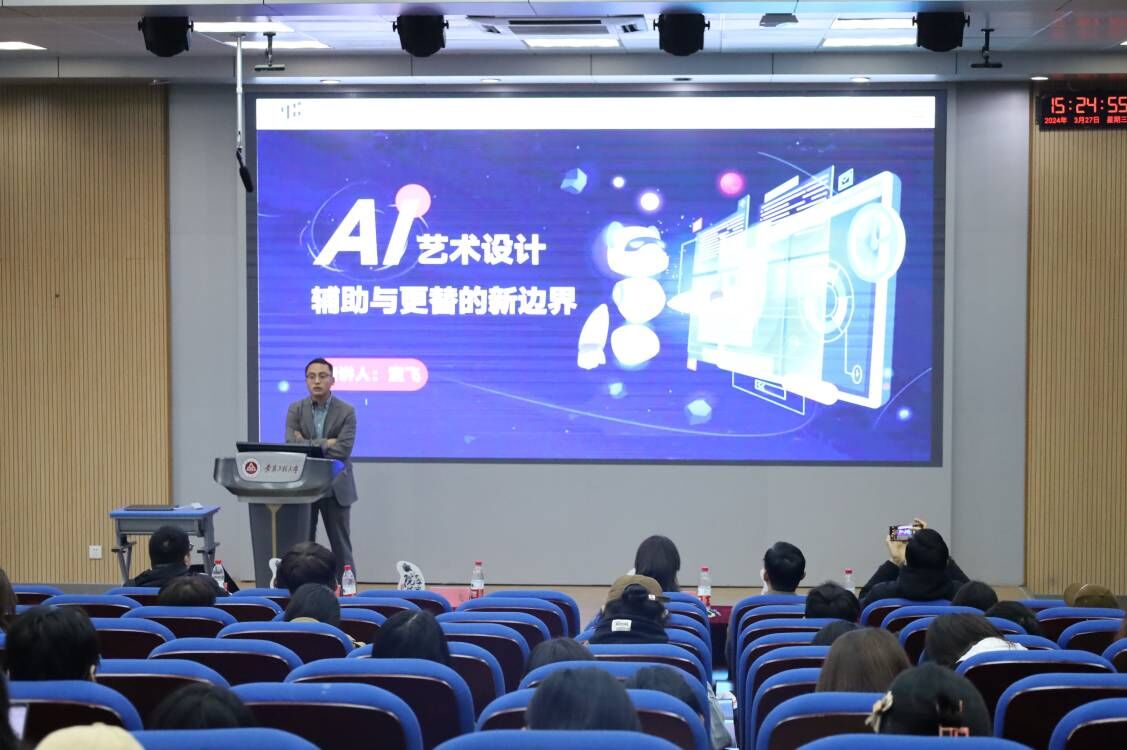 为提高设计学院学生设计素养,掌握设计前沿动态,营造浓厚学术氛围,引导青年学生“学”起来,3月28日,设计学院“院长下午茶”举办“科技与艺术的碰撞——AI时代 我们如何设计”学术报告及圆桌论坛,邀请芜湖语笙数字科技公司总经理童飞作题为《AI艺术设计 辅助与更替的新边界》讲座,设计学院副院长王小元主持报告和论坛,专业教师陈党、黄卫国、李赛赛作为论坛嘉宾参加活动。