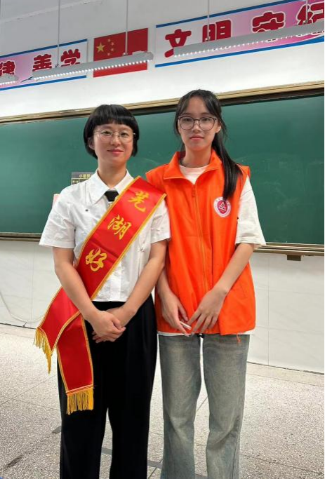 设计学院广告学专业10名大学生,在视觉传达设计系教师党支部副书记苏杨的带领下,身着橘色志愿者服装,成为活动现场的一道亮丽风景线。他们不仅是采访志愿者,更是创新教学模式的实践者。在这次活动中,学生们将《创意写作》课程的理论知识与实践相结合,全程带队,指导小学生记者进行采访活动。他们运用课程中学到的采访技巧,培训小记者如何提问、记录和观察,与道德模范进行深入交流,成为连接道德模范与小记者的桥梁。