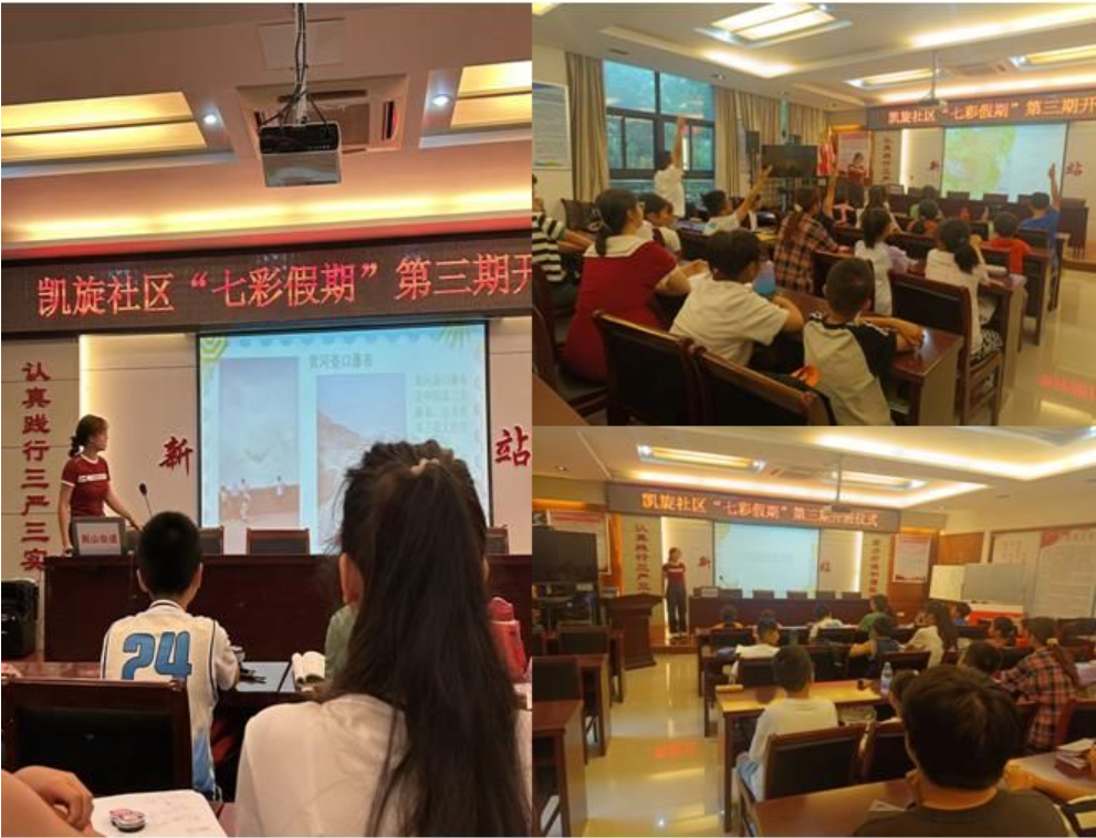 2024年7月4日,设计学院暑期“三下乡”团队前往凯旋社区开展为期一周的暑期支教志愿服务活动。虽然室外烈日炎炎,但社区活动中心内充满了欢声笑语,一场生动有趣的公益课堂在这里如火如荼地进行着。本次公益课堂以“美学创意”为主题,旨在通过生动的讲解和互动,激发孩子们对美学的兴趣,培养他们的创造力和审美意识。