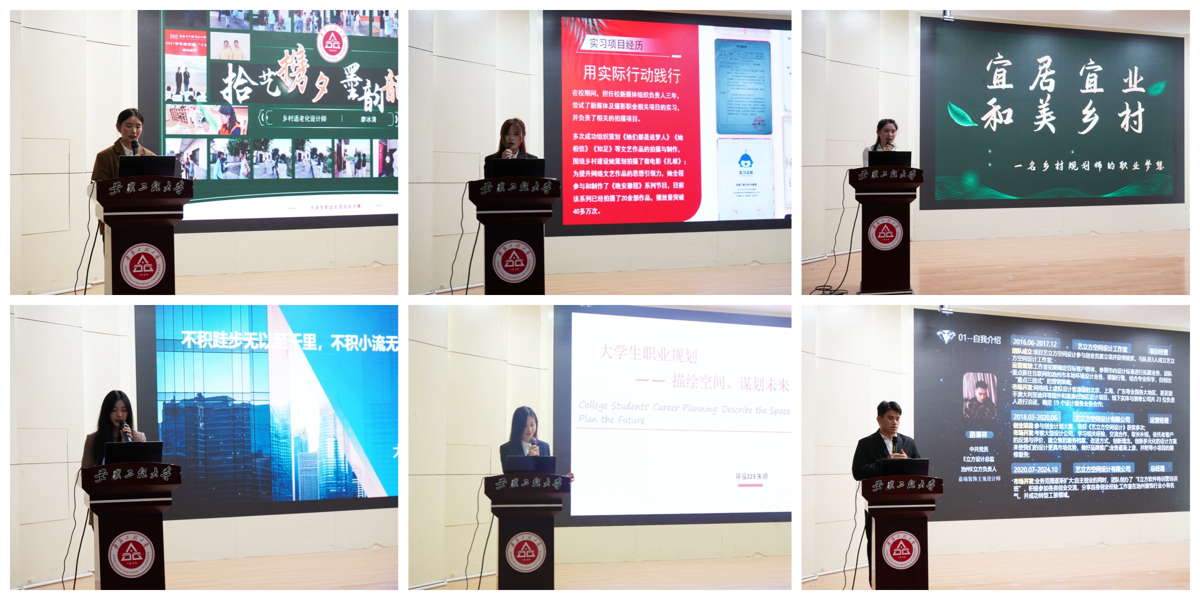 此次比赛分为就业赛道和成长赛道。经过学院的广泛宣传、策划组织和初赛评选,共有九位同学进入院级决赛。参赛学生根据自身专业和兴趣目标,从自我认知、职业认知、计划实施以及评估调整等维度全方位立体展示了自己的职业生涯规划,在规划和展示的过程中逐步优化、明晰自己的未来规划。最终设计研23廖冰清获一等奖;广告221华雨萱等两位同学获二等奖;设计研24郑慧敏等三位同学获三等奖;产设231张旭亮等三位同学获优秀奖。