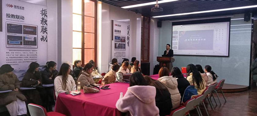 在课程结课环节,费利君老师带领同学们赴国投证券投教基地参观学习,参加作品展播与颁奖。在参观学习环节,基地主讲人向同学们介绍了企业的发展历史和反诈常识;在作品展播环节,基地负责人对同学们的视频作品逐个进行点评,从主题的契合度、创意的新颖性,到画面的表现力、宣传效果等多个维度,一一指出了作品的亮点与可提升之处,让同学们受益匪浅。在颁奖环节,依据企业方对作品质量的排名,基地负责人依次为获奖小组颁奖。现场气氛热烈,同学们收获满满。