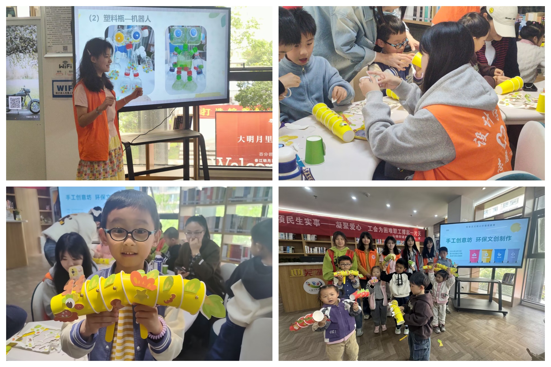4月13日,设计学院团委联合马塘街道新兴社区走进春江书苑,开展“手工创意坊——环保文创制作”活动,为环保事业助力,为孩子们成长添彩。
