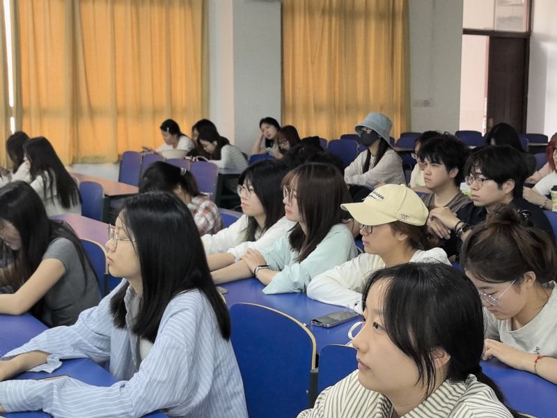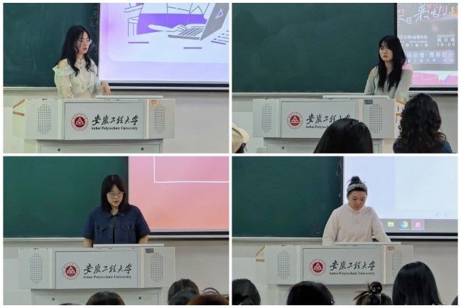 在主题分享环节,娄司琪等学生代表先后进行经验交流。其中,娄司琪与汪李丹同学从赛事参与者的角度,深度分享了设计思维培养与参赛策略的心得;张静同学以原创作品为例,系统解析了非遗傩戏IP的创作理念与设计方案;华雨萱同学结合自身跨学科背景,分享了从工科到设计领域的心路历程以及专业能力的提升路径。同学们的精彩分享为在场师生提供了极具参考价值的创新设计范式。