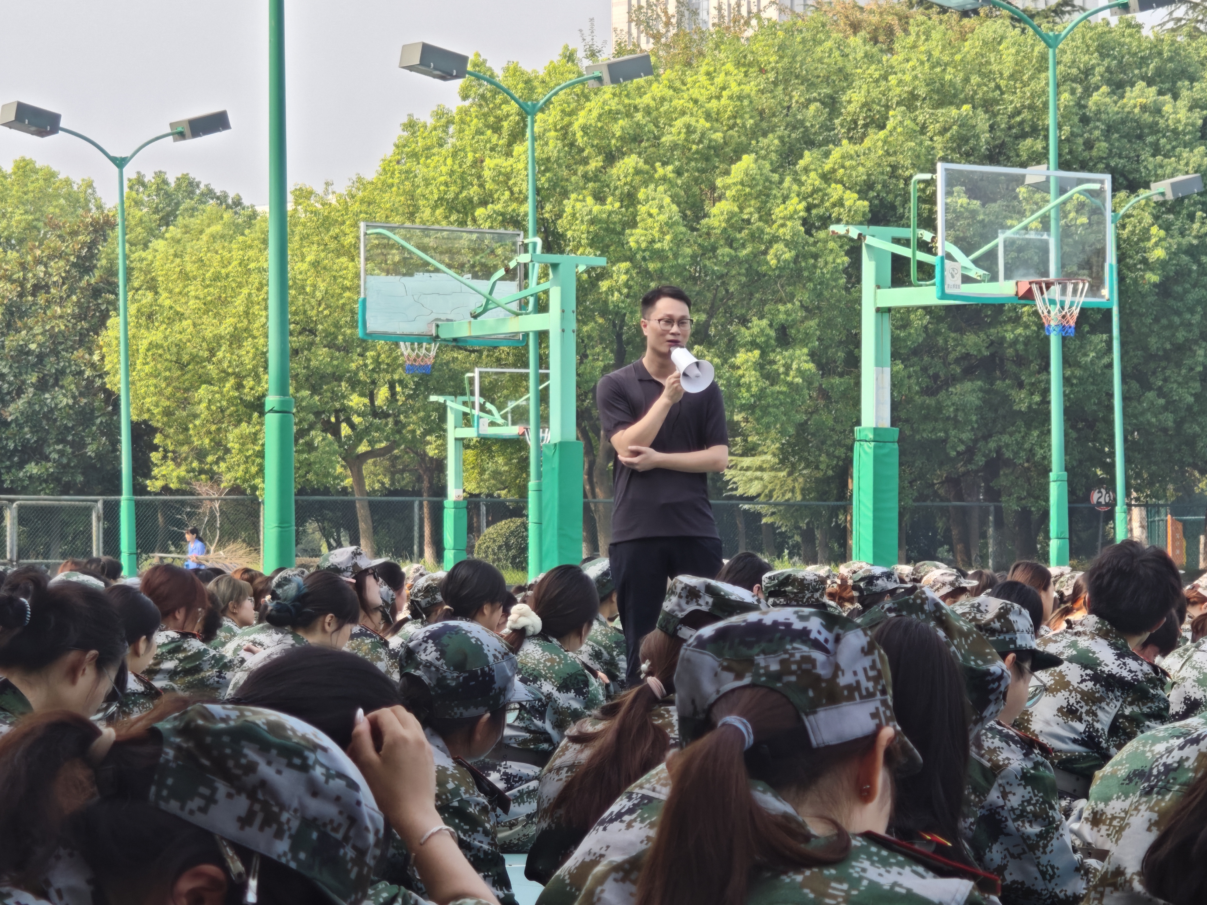 9月8日上午,设计学院组织2025级全体新生在风雨篮球场召开军训动员大会。学院党委副书记陶冶、新生辅导员叶杨、吴旭及2025级学长导员、全体新生参加大会。